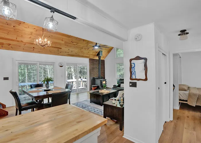 **Welcome to The Nordic Breeze, a serene retreat located just 35 kilometers from Wilkes-Barre/Scranton International Airport.** Nestled in the picturesque landscape of Gouldsboro, this hidden gem offers an exquisite blend of comfort and tranquility, perfect for travelers seeking a peaceful escape. With a dedication to hospitality, The Nordic also boasts stunning views of the surrounding natural beauty, creating an inviting atmosphere for relaxation.